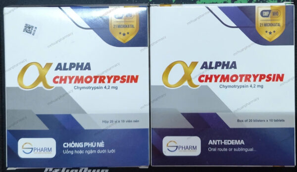 Chymotrypsin (Alpha- Chymotrypsin) là một enzym thủy phân protein có tác dụng xúc tác chọn lọc trên các nối peptid ở liền kề các acid amin có nhân thơm. Thuốc dạng viên được dùng trong chống viêm, chống phù nề các mô mềm do viêm nhiễm, do áp xe, loét hoặc do chấn thương và giúp làm lỏng các dịch tiết nhầy của đường hô hấp trên trong các bệnh viêm phổi, viêm xoang, viêm phế quản.