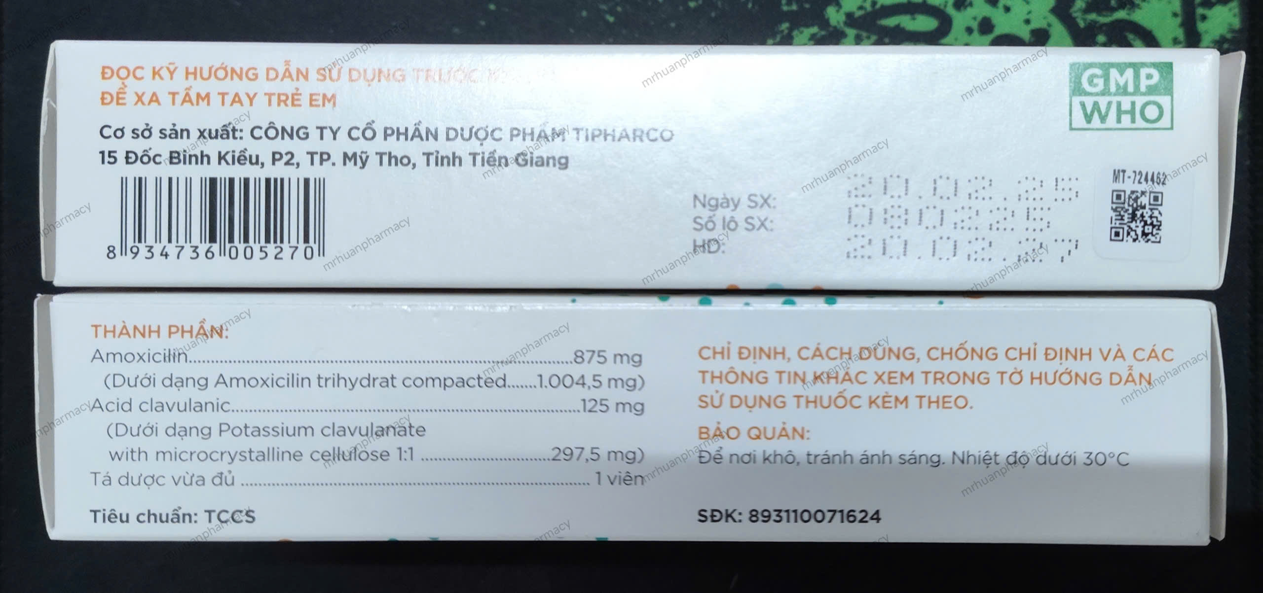 Amoxicillin và Acid clavulanic đều hấp thu dễ dàng qua đường uống. Nồng độ 2 chất này trong huyết thanh đạt tối đa sau 1-2 giờ uống thuốc. Khả dụng sinh học đường uống của Amoxicilin là 90% và của Acid clavulanic là 75%.
