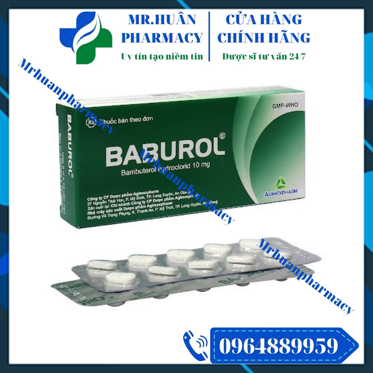 Baburol chứa banbuterol là tiền chất của terbutaline, chất chủ vận giao cảm trên thụ thể beta, kích thích chọn lọc trên beta-2, do đó làm giãn cơ trơn phế quản, ức chế phóng thích các chất gây co thắt nội sinh, ức chế các phản ứng phù nề gây ra bởi các chất trung gian hóa học nội sinh và làm tăng sự thanh thải của hệ thống lông chuyển nhầy.