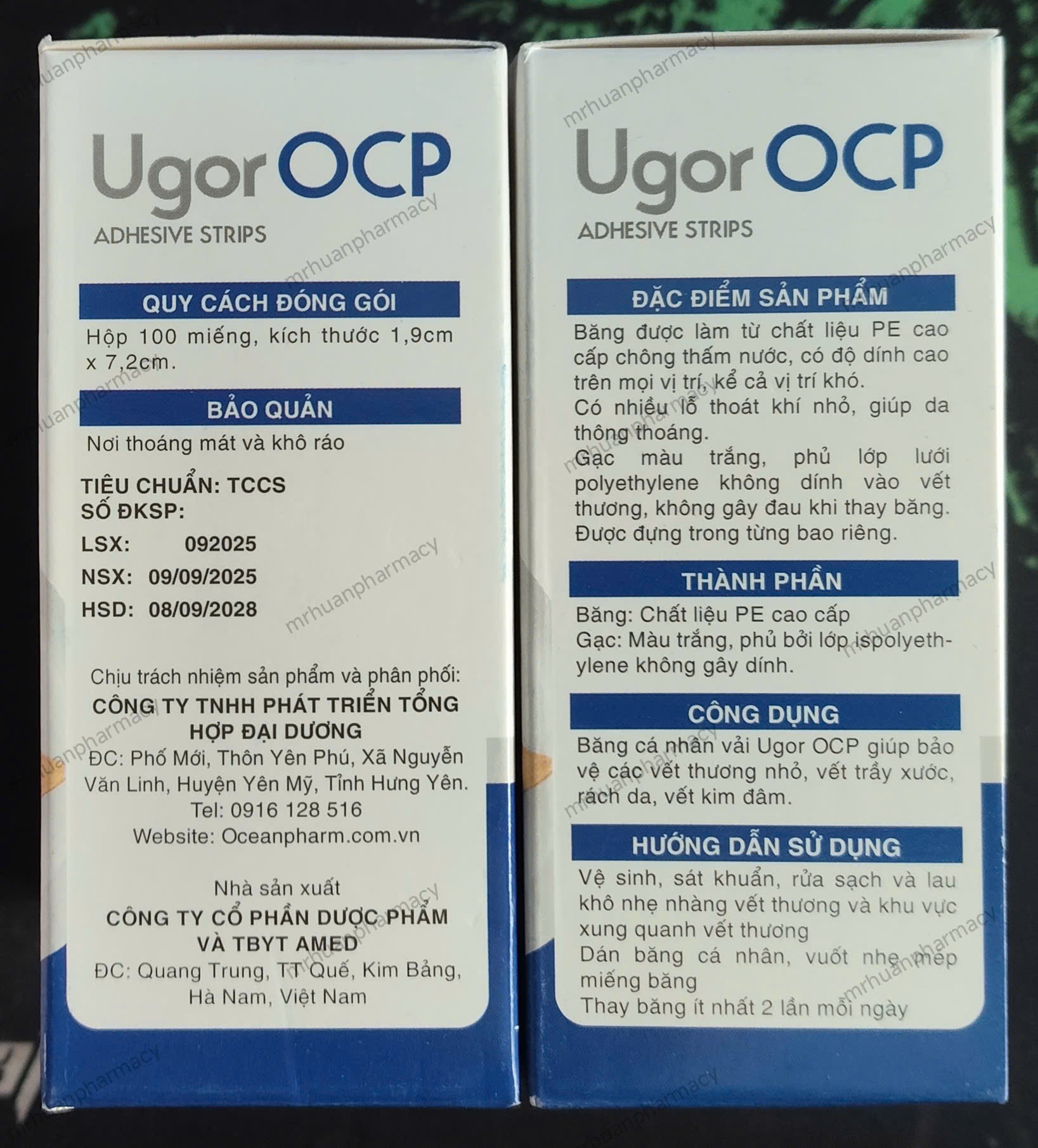 – Băng cá nhân vải Ugor OCP giúp bảo vệ các vết thương nhỏ, vết trầy xước, rách da, vết kim đâm.