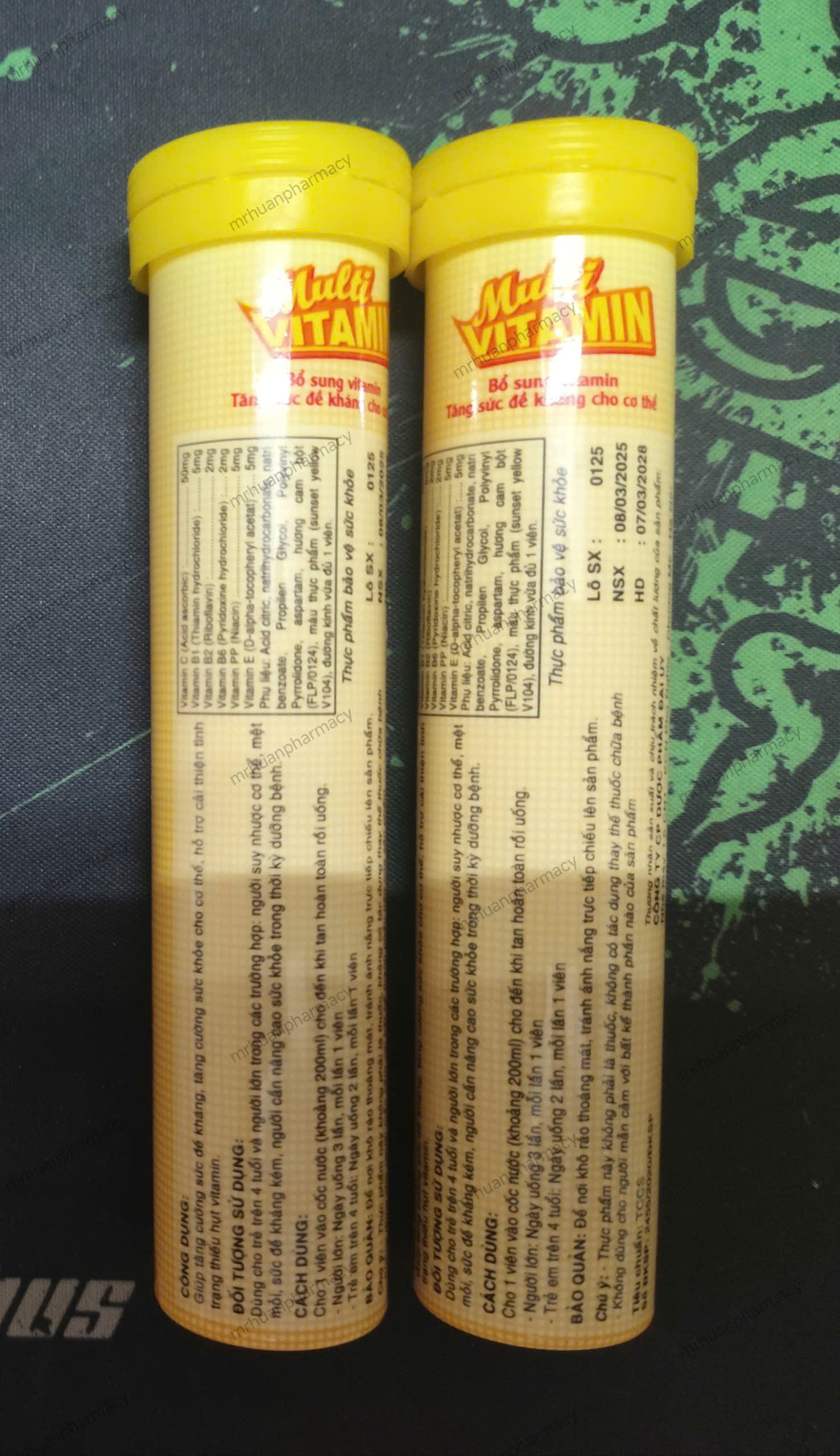 – Phụ liệu: Acid citric, Natrihydrocarbonat, Natri benzoat, Propylene glycol, Polyvinyl pyrrolidon, Aspartame, Hương cam bột, Màu thực phẩm, Đường kính vừa đủ 1 viên.