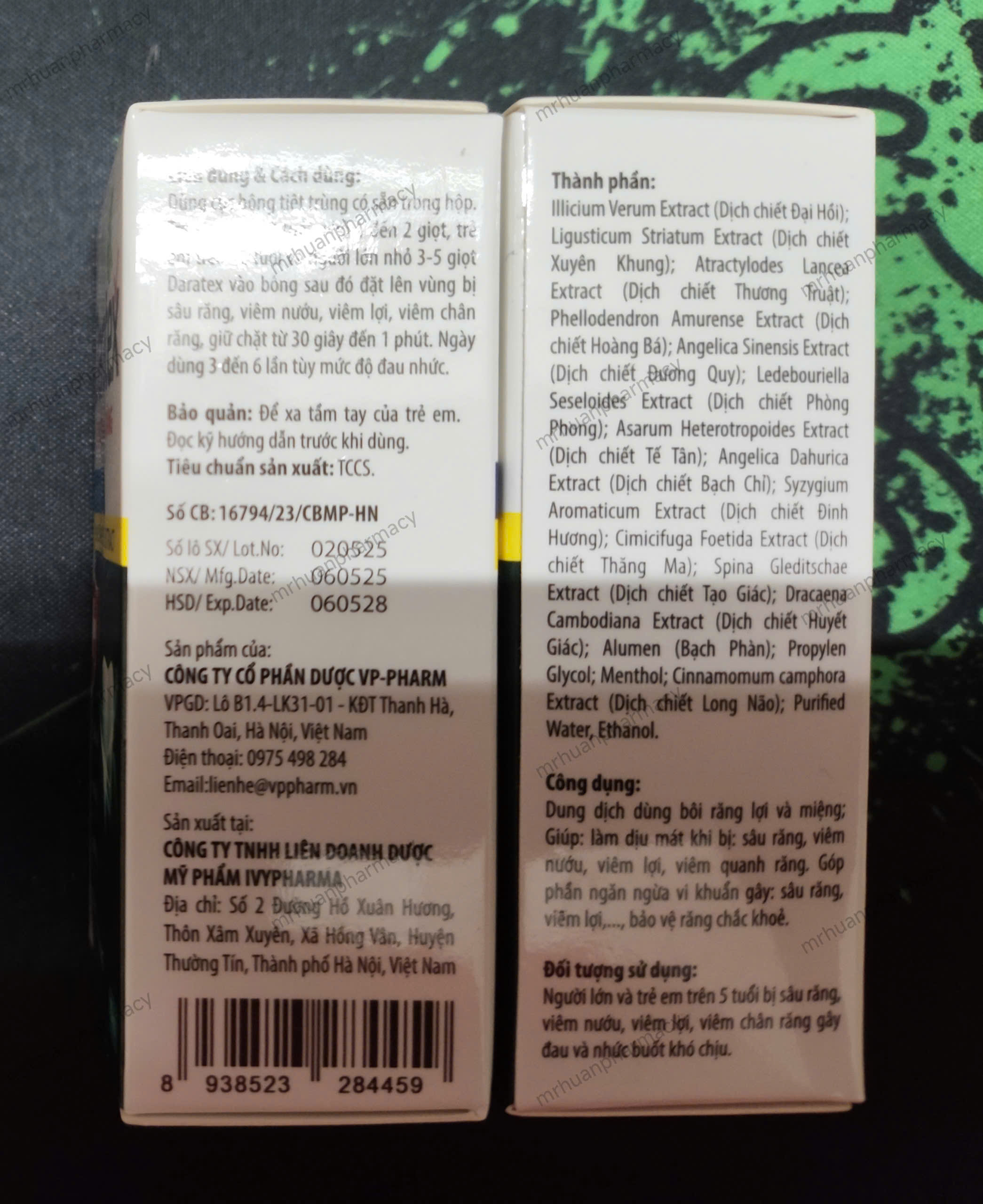 – Dung dịch dùng bôi răng lợi và miệng; Giúp: làm dịu mát khi bị: sâu răng, viêm nướu, viêm lợi, viêm quanh răng.
