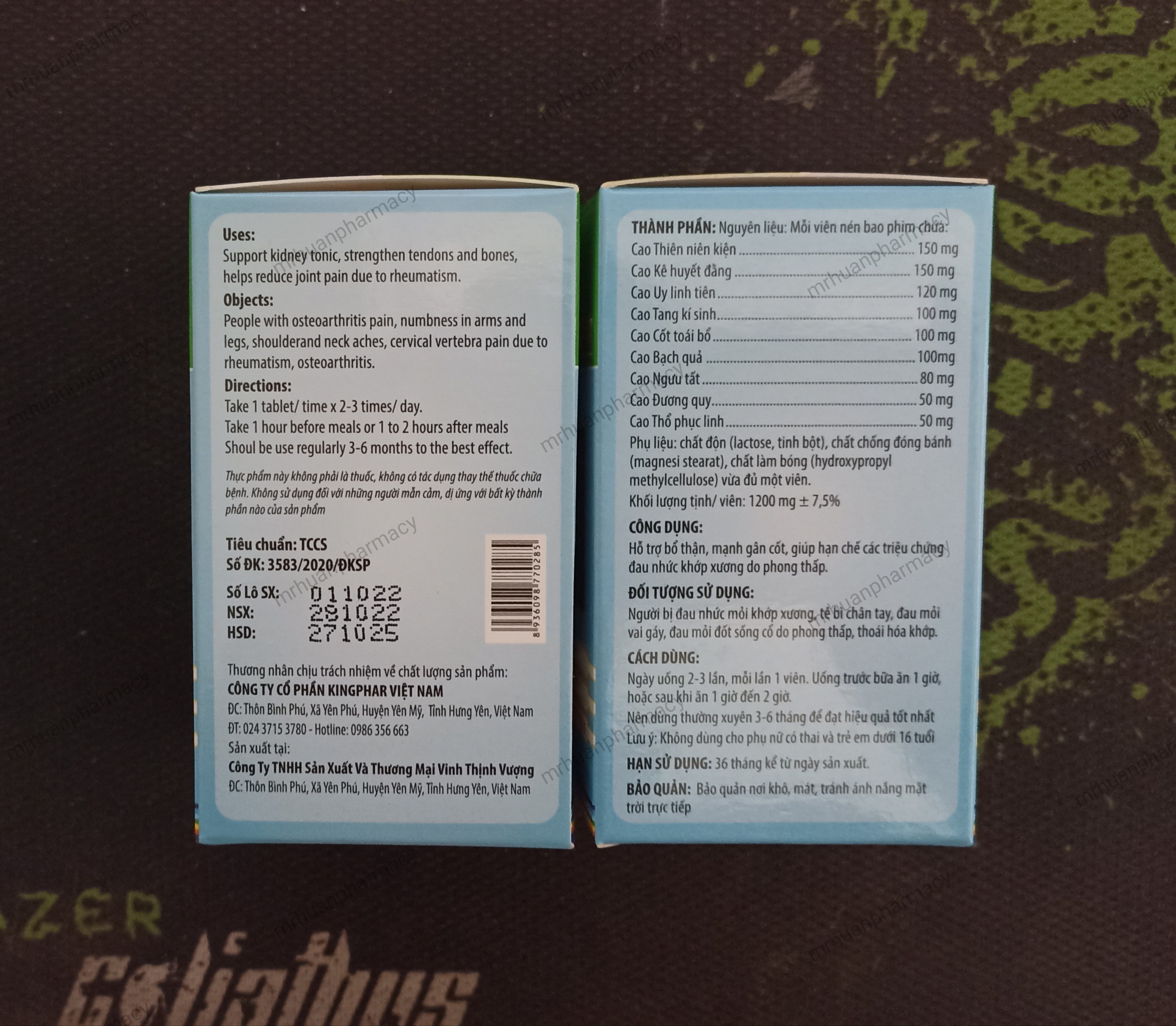 – Phụ liệu: lactose, tinh bột, magnesi stearate, hydroxypropyl methylcellulose vừa đủ 1 viên.