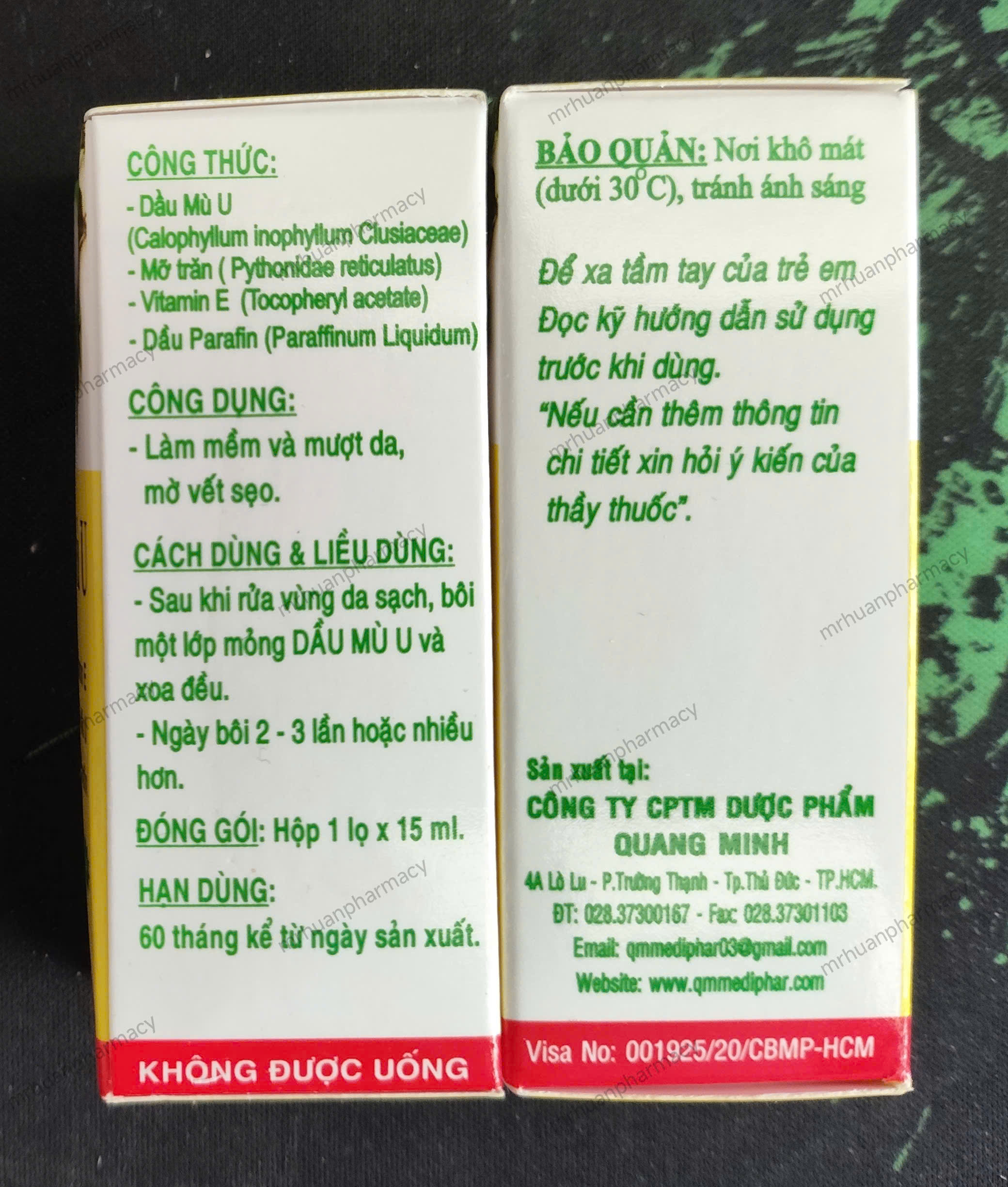 – Sau khi rửa vùng da sạch, bôi một lớp mỏng Dầu Mù U và xoa đều.