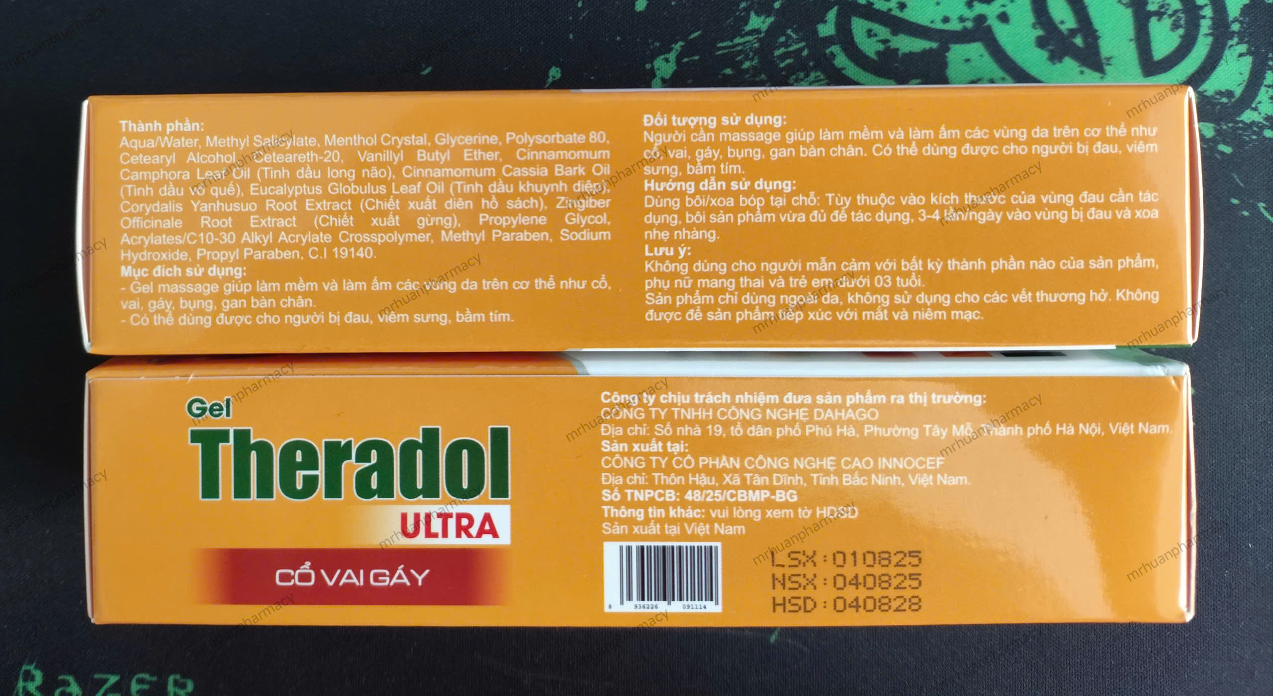 – Aqua/Water, Methyl Salicylate, Menthol Crystal, Glycerine, Polysorbate 80, Cetearyl Alcohol, Ceteareth-20, Vanilyl Butyl Ether, Tinh dầu long não, Tinh dầu vỏ quế, Tinh dầu khuynh diệp, Chiết xuất diên hồ sách, Chiết xuất gừng, Propylene Glycol, Acrylates/C10-30 Alkyl Acrylate Crosspolymer, Methyl Paraben, Sodium Hydroxide, Propyl Paraben, C.I 19140.