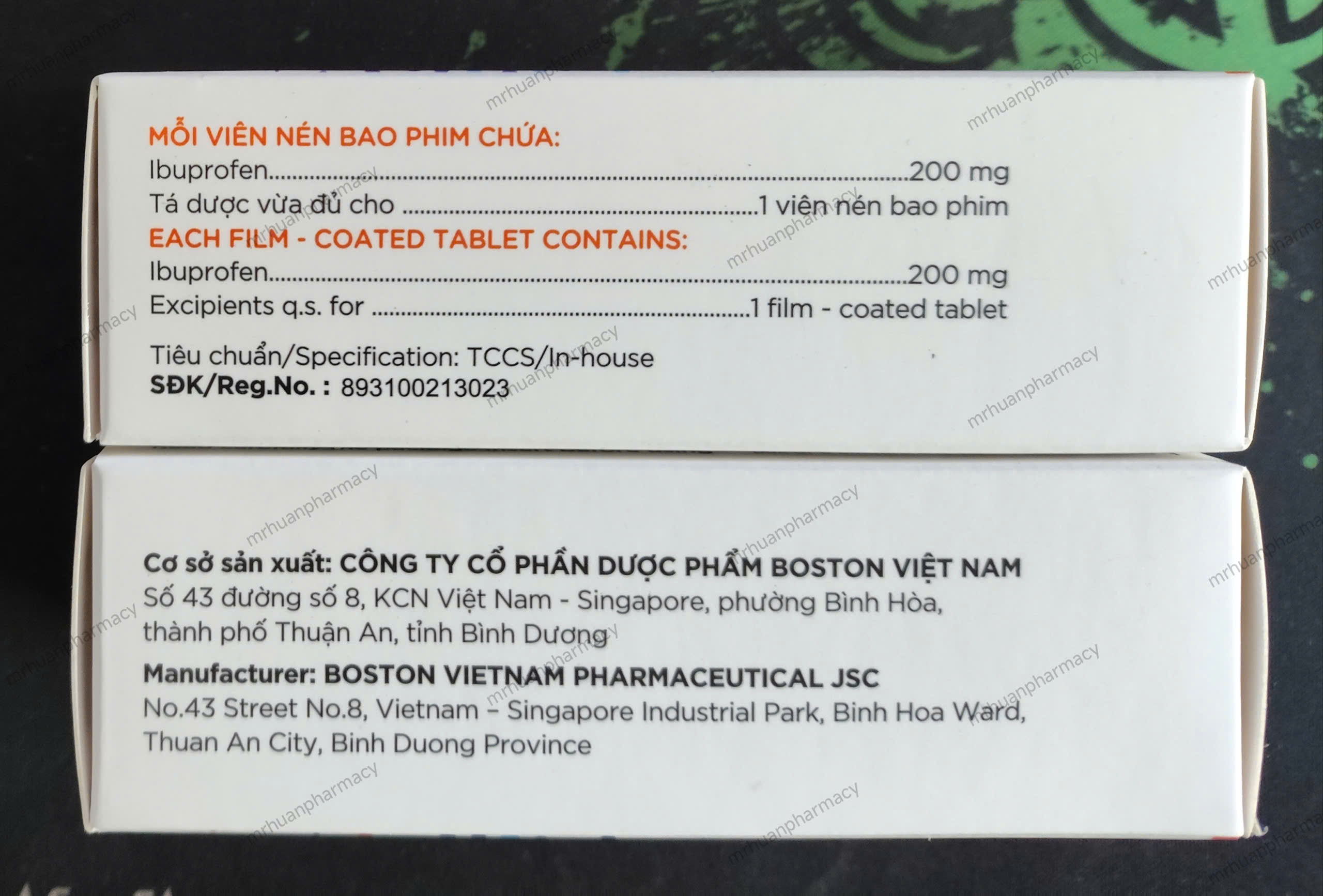 Ibuprofen hấp thu tốt ở ống tiêu hóa. Nồng độ tối đa của thuốc trong huyết tương đạt được sau khi uống từ 1 đến 2 giờ. Thuốc gắn rất nhiều với protein huyết tương. Nửa đời của thuốc khoảng 2 giờ. Ibuprofen đào thải rất nhanh qua nước tiểu (1% dưới dạng không đổi, 14% dưới dạng liên hợp).