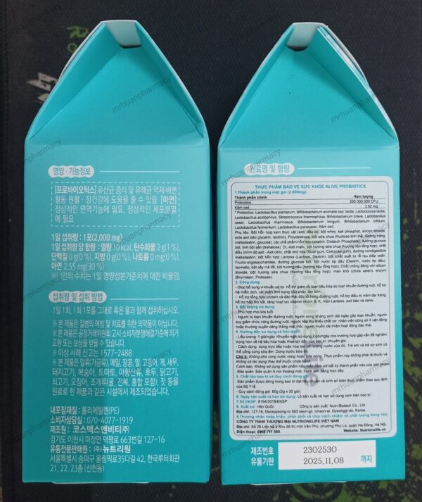 + Tổng hợp 12 chủng lợi khuẩn còn sống: Alive Probiotics chứa Lactobacillus plantarum, Bifidobacterium animalis lactis, Lactobacillus lactis, Lactobacillus Acidophilus, Streptococcus thermophiles, Bifidobacterium breve, Lactobacillus Casei, Lactobacillus Rhamnosus, Bifidobacterium Longgum, Bifidobacterium Bifidum, Lactobacillus Fermentum, Lactobacillus Paracasei.