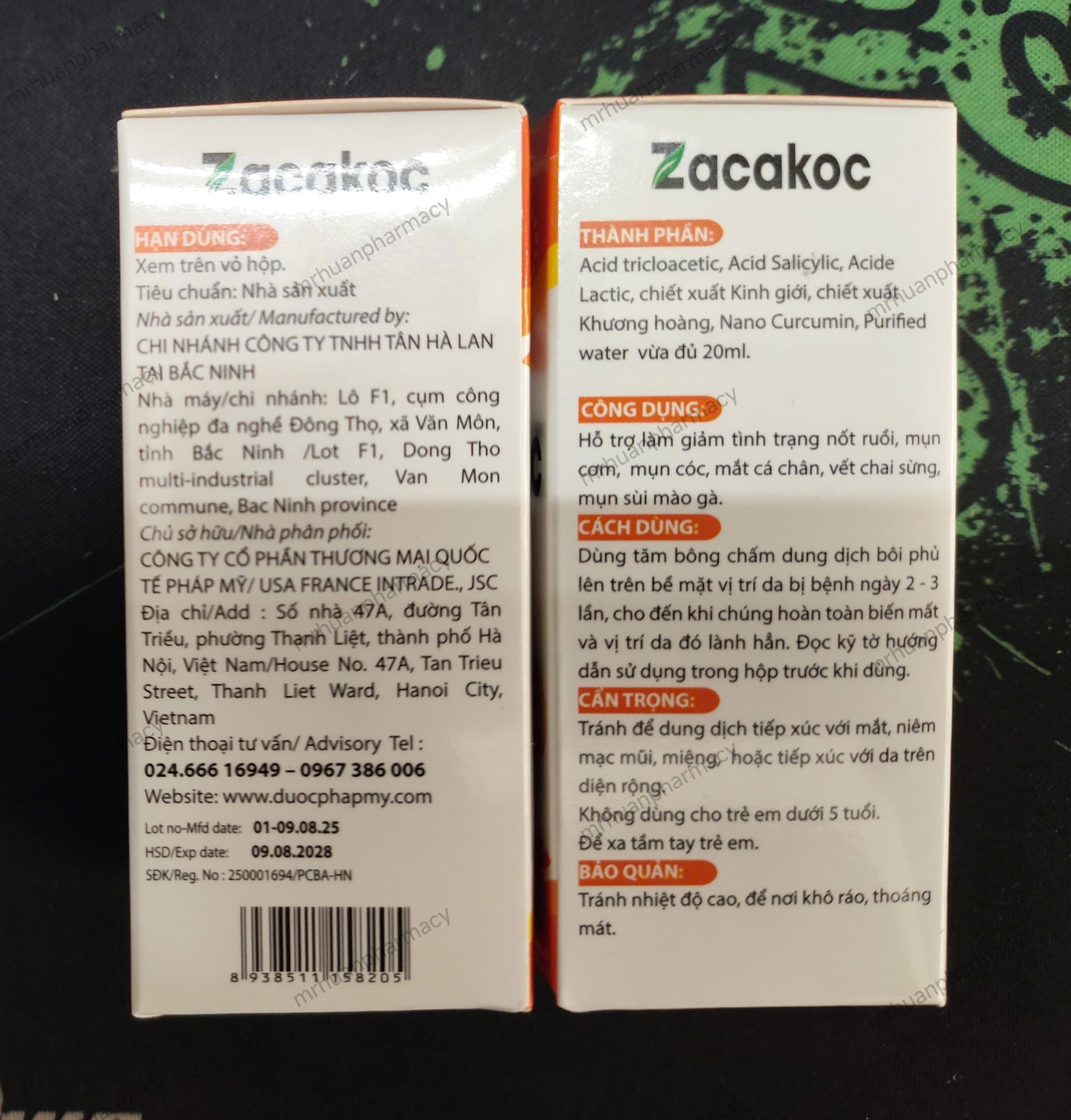 – Acid Tricloacetic, Acid Salicylic, Acid Lactic, Chiết xuất Kinh giới, Chiết xuất Khương hoàng, Nano Curcumin, Nước tinh khiết vừa đủ 20ml.